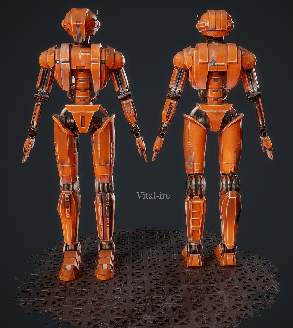 A custom HK-47 model, skinned for basic humanoid rig type applications, no rig controls included.